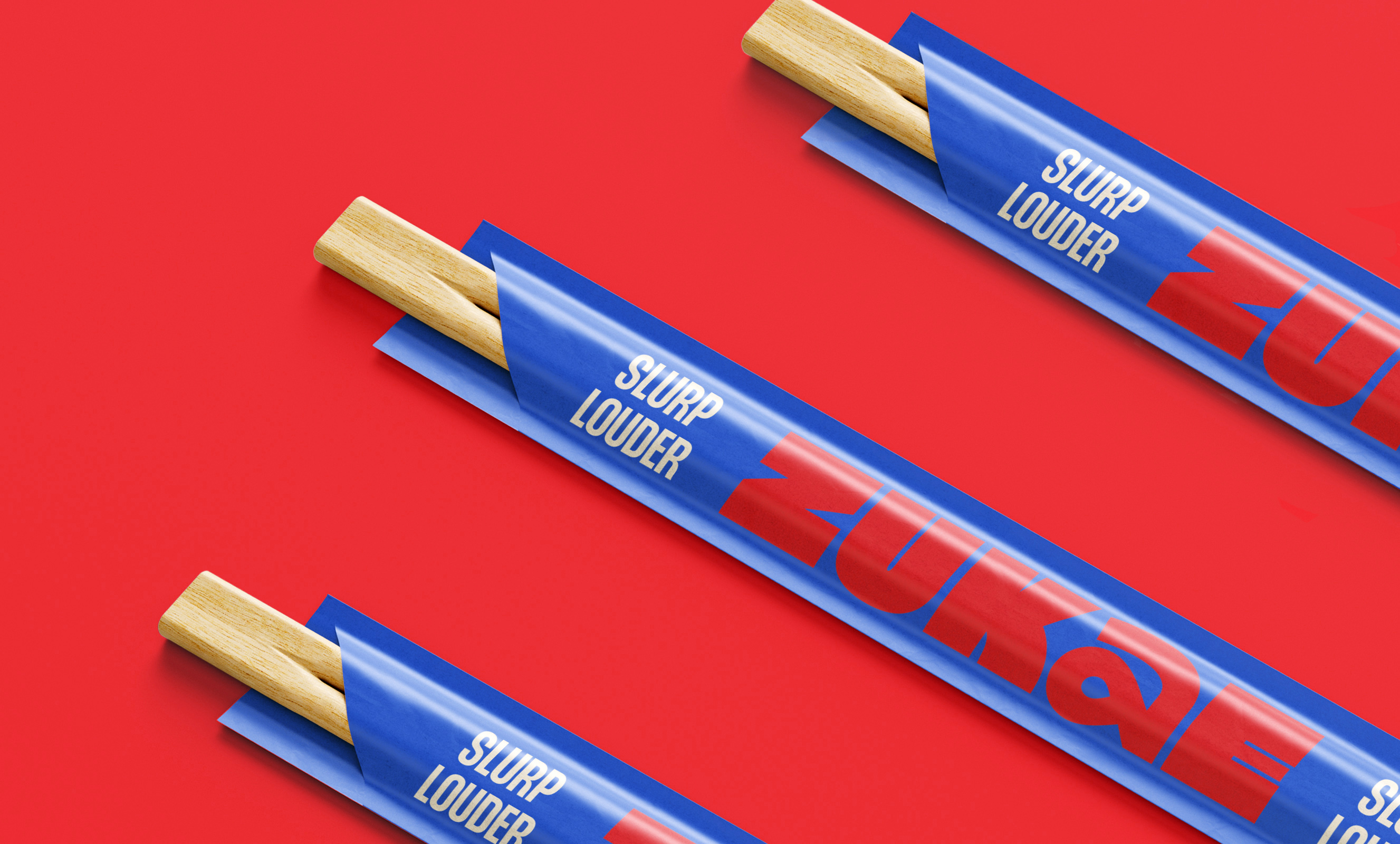 The goal of this project was to create a brand identity that, just like the product, is packed with flavour. I chose a striking colour combination of red and blue and paired it with a bold, chunky typeface for the logo to make sure it makes a statement wherever it appears. To give the logo more character, I modified the letter “A” with a flowy twist, inspired by Japanese hiragana and the noodles at the heart of the brand. For the photography, it was clear the visuals needed to make mouths water, so I used close-up shots of the dishes to highlight their irresistible look and paired them with playful taglines like “slurp louder” to enhance the craveability of the product.